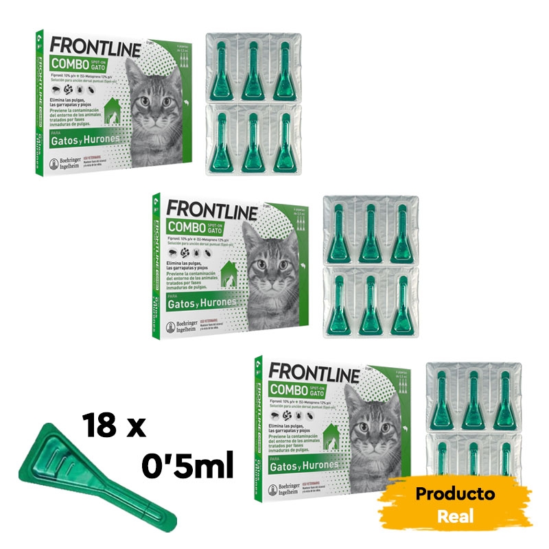 Con una innovadora composición basada en los últimos avances científicos, Frontline ofrece una solución efectiva y rápida para combatir diversos parásitos que pueden afectar a tu felino. Su acción se centra en diferentes puntos del sistema nervioso de los parásitos, como insectos y ácaros, induciendo una muerte por hiperexcitación nerviosa. Las pipetas Frontline actúan de manera fulminante, eliminando las pulgas en tan solo 24 horas, y a garrapatas y piojos después de 48 horas de su aplicación. Además, su actividad insecticida proporciona protección contra nuevas infestaciones, con una duración de 4 semanas para pulgas y 2 semanas para garrapatas. Confía en Frontline Combo Spot-On Gato para mantener a tu felino protegido y libre de parásitos.