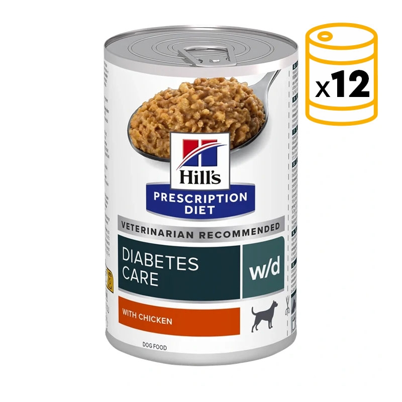 Hill's Prescription Diet w/d Diabetes Care es un alimento húmedo completo y equilibrado especialmente formulado para perros adultos que necesitan apoyo nutricional en casos de diabetes, colitis y control de peso. Gracias a su bajo aporte calórico y a su elevado contenido en fibra, ayuda a mantener un peso saludable y a estabilizar la digestión.