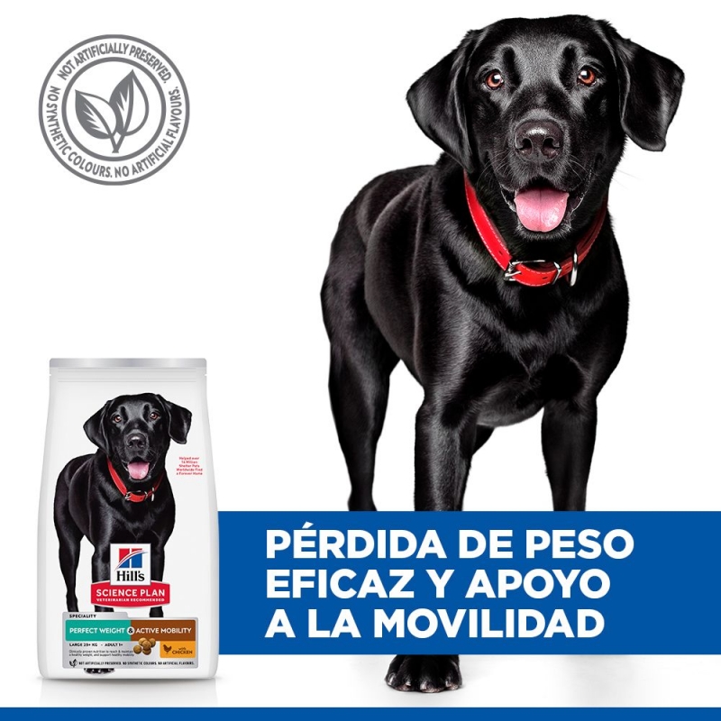 El pienso para perro grande Hill's Science Plan Perfect Weight & Active Mobility con pollo es una opción ideal para perros adultos de razas grandes que necesitan mantener su peso bajo control sin comprometer su vitalidad ni su movilidad. Gracias a su fórmula nutricional avanzada, este alimento ofrece una dieta completa, sabrosa y equilibrada, pensada para cuidar el bienestar de tu mascota a largo plazo.