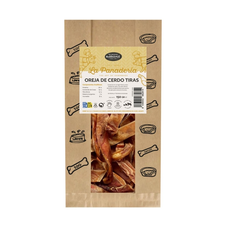 La oreja de cerdo en tiras para perros es un snack 100% natural elaborado de forma artesanal, pensado para ofrecer una experiencia de masticación intensa y satisfactoria. Su formato en tiras facilita el consumo y la dosificación, manteniendo una textura firme que resulta muy atractiva para perros de todos los tamaños.