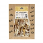 Este snack monoproteico se presenta en una práctica bolsa tipo panadería de 300 g, que combina tradición y comodidad. El pelo natural aporta un efecto mecánico que puede ayudar al arrastre intestinal, mientras la masticación estimula el comportamiento natural de roer y contribuye al cuidado dental.