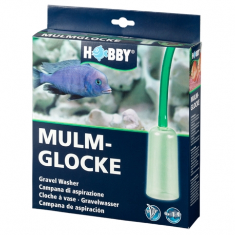 Hobby Fish Mulmglocke, campana sifonadora para acuario recomendada en cada cambio de agua para eliminar desechos orgánicos del fondo y mantener una mejor calidad del agua.