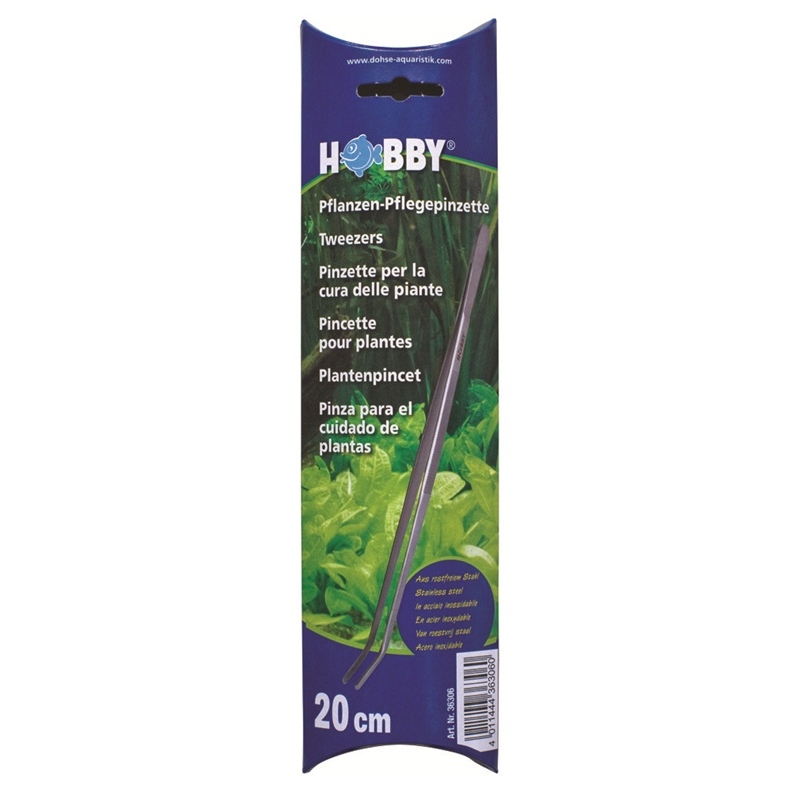 Hobby Fish Pinzas Rectas 20 cm, herramienta de acero inoxidable ideal para el cuidado de plantas de acuario y la alimentación de animales en terrarios.