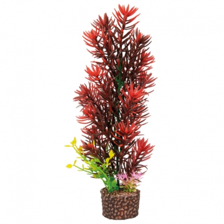 Con unas dimensiones aproximadas de 4 x 25 cm, esta planta decorativa con base permite crear composiciones más altas y estructuradas dentro del acuario, sin necesidad de mantenimiento ni cuidados especiales.