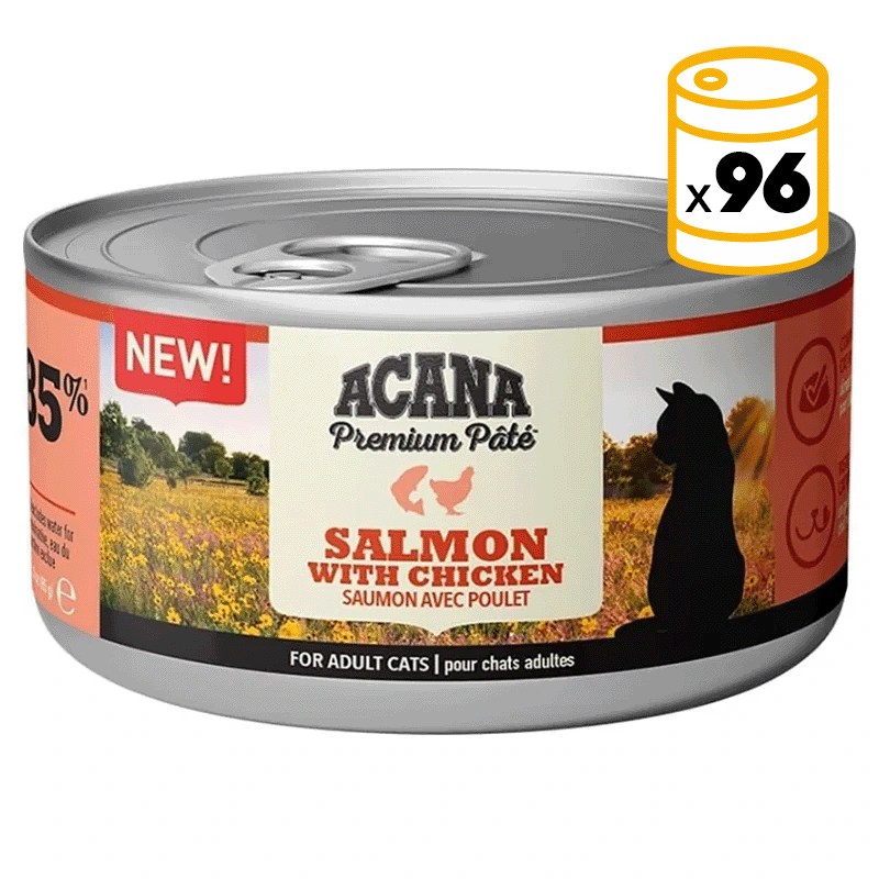 ACANA Premium Paté Salmon Recipe è un alimento umido di alta qualità progettato per gatti di tutte le età. Questa ricetta è arricchita con salmone fresco del Pacifico e contiene un 80% di carne e un 10% di verdure, offrendo un pasto nutriente ed equilibrato per il tuo amico felino. Ogni porzione contiene nutrienti essenziali come proteine, grassi e aminoacidi essenziali, oltre a fibre alimentari per favorire una digestione sana. ACANA Premium Paté Salmon Recipe è senza cereali, glutine, grani, sottoprodotti di origine animale e ingredienti artificiali. Ciò significa che offre un pasto sano per il tuo gatto con un sapore delizioso.