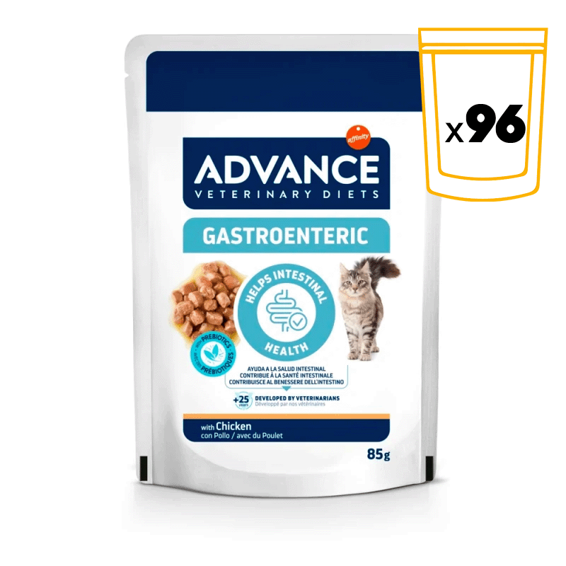 Advance Gastroenteric Veterinary Diets è un alimento dietetico completo e bilanciato progettato specificamente per gatti con problemi digestivi, insufficienza pancreatica esocrina e difficoltà nell'assorbimento intestinale. Questo alimento umido fornisce al tuo gatto tutti i nutrienti essenziali e le sostanze vitali di cui ha bisogno quotidianamente.
