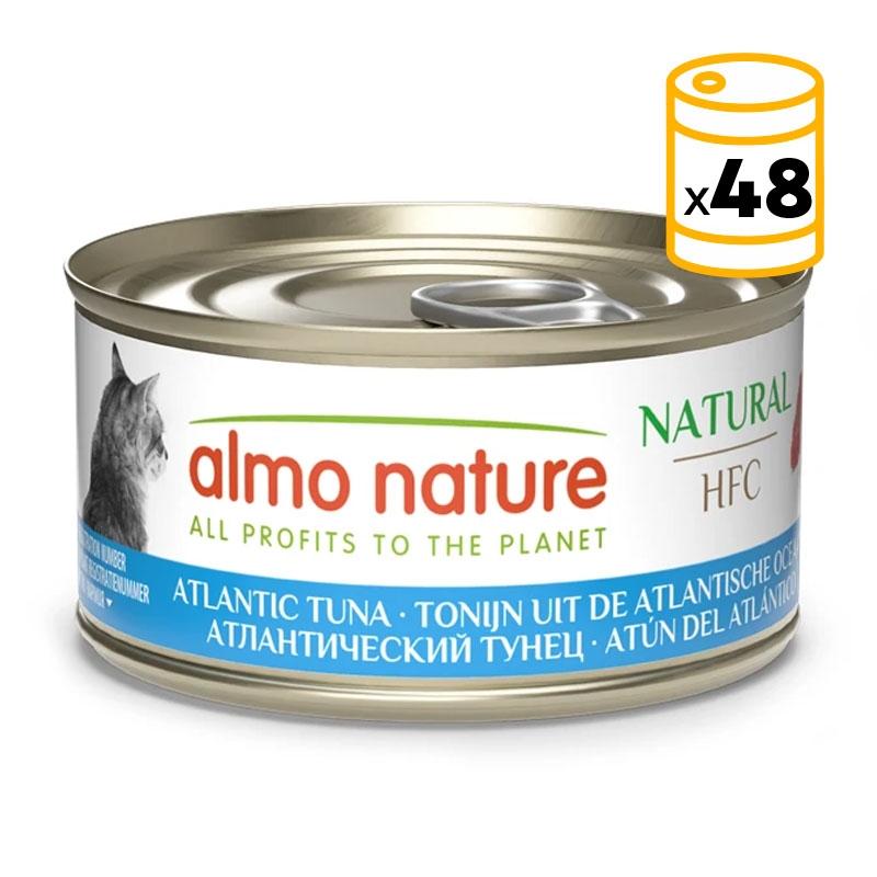 Almo Nature HFC Tonno dell'Atlantico fornisce al tuo gatto una fonte ricca di omega-3 e omega-6, essenziali per mantenere una pelle sana e un pelo lucido. Grazie alla sua alta qualità, questo alimento aiuta anche a rafforzare il sistema immunitario, promuovere la salute digestiva e contribuire a una condizione fisica eccellente in generale.