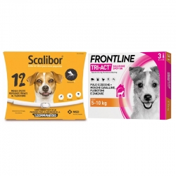 Pack Super Protezione: collare Scalibor 48 cm + Frontline Tri-Act 3 pipette (5-10 kg) per cani di piccola taglia