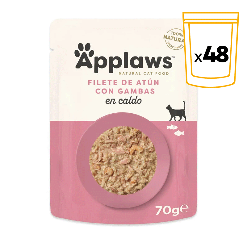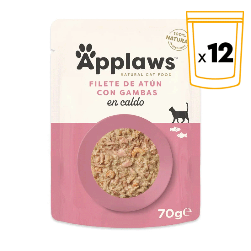 Immergiti in un'esperienza gastronomica unica per il tuo gatto con il cibo umido di Applaws, dove il fresco tonno si combina con l'esquisita consistenza dei gamberetti, offrendo un banchetto irresistibile. Questa ricetta naturale, composta principalmente da pesce e un tocco di riso, cucinata in un gustoso brodo di pesce, fornisce una fonte abbondante di proteine di qualità e nutrienti essenziali per il benessere del tuo animale domestico.