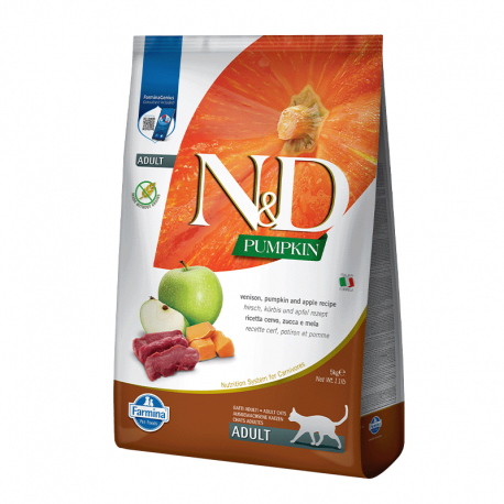 Farmina N&D Adulti è una linea di alimenti secchi arricchiti con acidi grassi omega-3, minerali e vitamine per fornire una nutrizione salutare per il tuo gatto. Questa ricetta a base di zucca, cervo e mela offre un'alimentazione salutare per soddisfare le esigenze nutrizionali del tuo miglior amico.