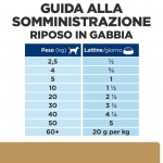 | Peso del gatto - kg | Quantità giornaliera - Lattine da 200 g - Terapia intensiva - Riposo in gabbia | Quantità giornaliera - Lattine da 200 g - Terapia intensiva - Chirurgia, sepsi, cancro, trauma grave, febbre, lipidosi epatica felina | Quantità giornaliera - Lattine da 200 g - Terapia intensiva - Bruciatura grave, trauma, trauma cranico |