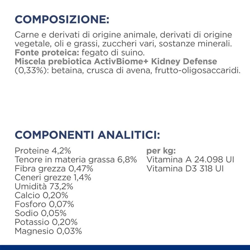 Combinazione di prebiotici ActivBiome+ Kidney Defense (0,33%): Betaìna, crusca di avena, frutto-oligosaccaridi.