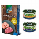 Il Meat Duo Menu di N&D Natural è una confezione di due lattine diverse che offre una combinazione irresistibile di pollo e agnello. Progettato come alimento complementare per gatti adulti, questa confezione fornisce un'opzione deliziosa e bilanciata per arricchire la dieta quotidiana del tuo felino.