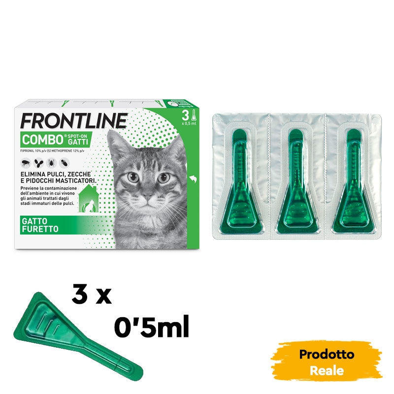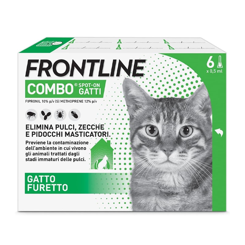 Dopo l'applicazione, Frontline si conserva temporaneamente nella pelle del gatto, prevenendo l'insorgenza di nuovi parassiti. È resistente all'acqua e agli shampoo. La caratteristica distintiva di Frontline Combo è la sua capacità di prevenire la contaminazione dell'ambiente in cui vive l'animale, eradicando le uova e le larve.