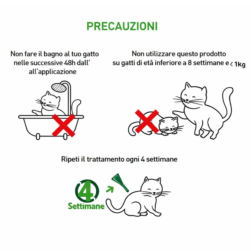 - Solo adatto a gatti. Non deve essere somministrato ad altri animali.