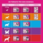 Presentationi Convenienti: Disponibile in confezioni da 3 e 6 pipette, facilitando l'amministrazione e il monitoraggio del trattamento, adattandosi alle esigenze del proprietario del cane.