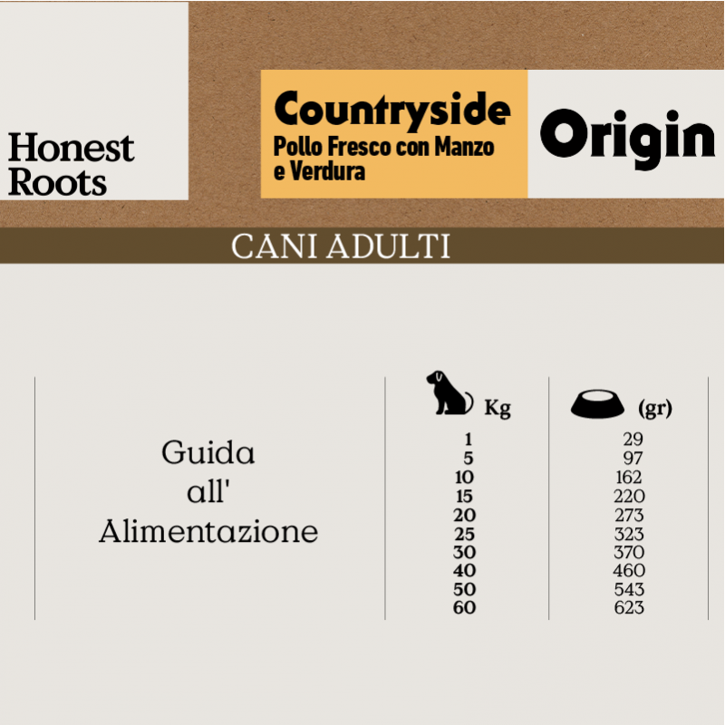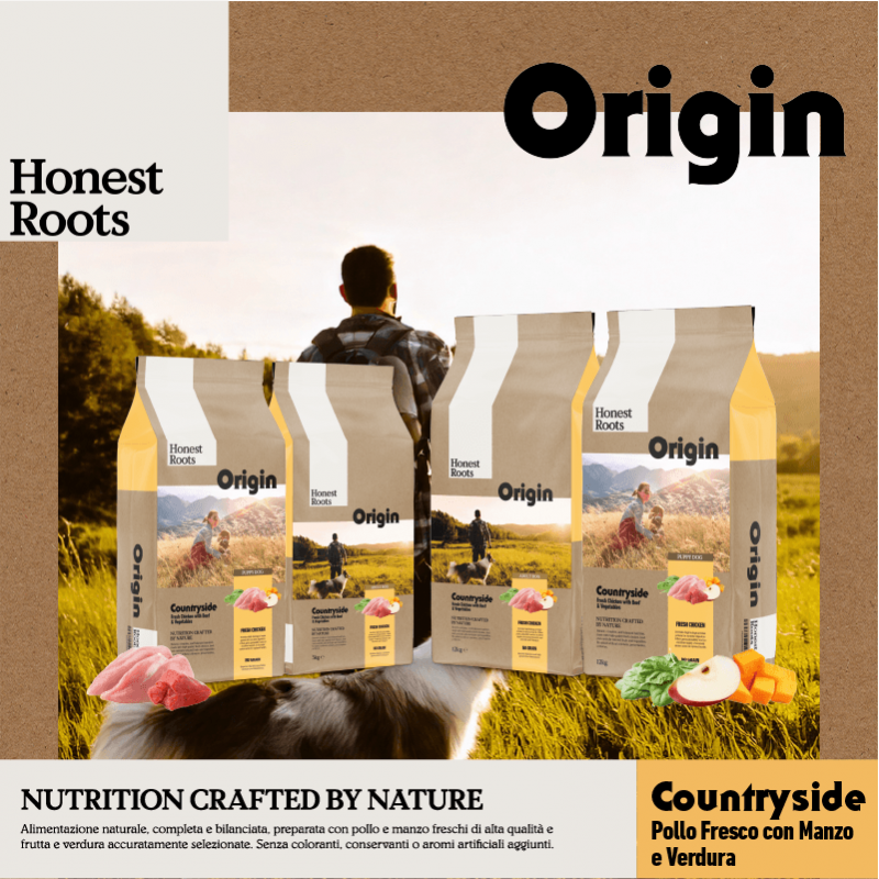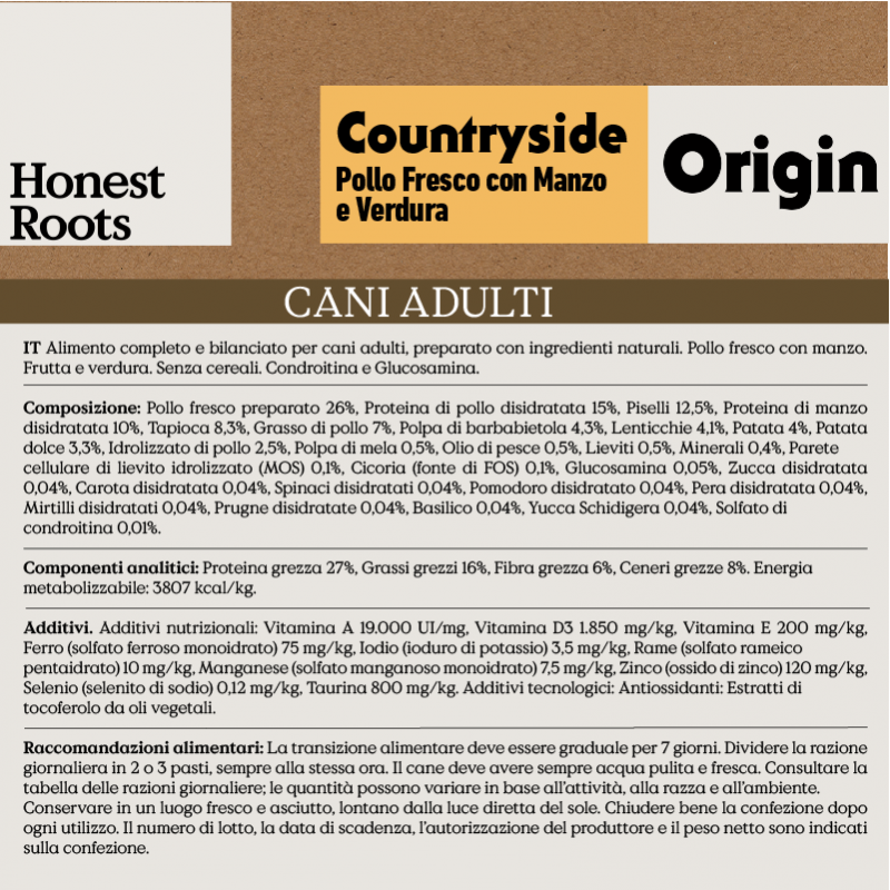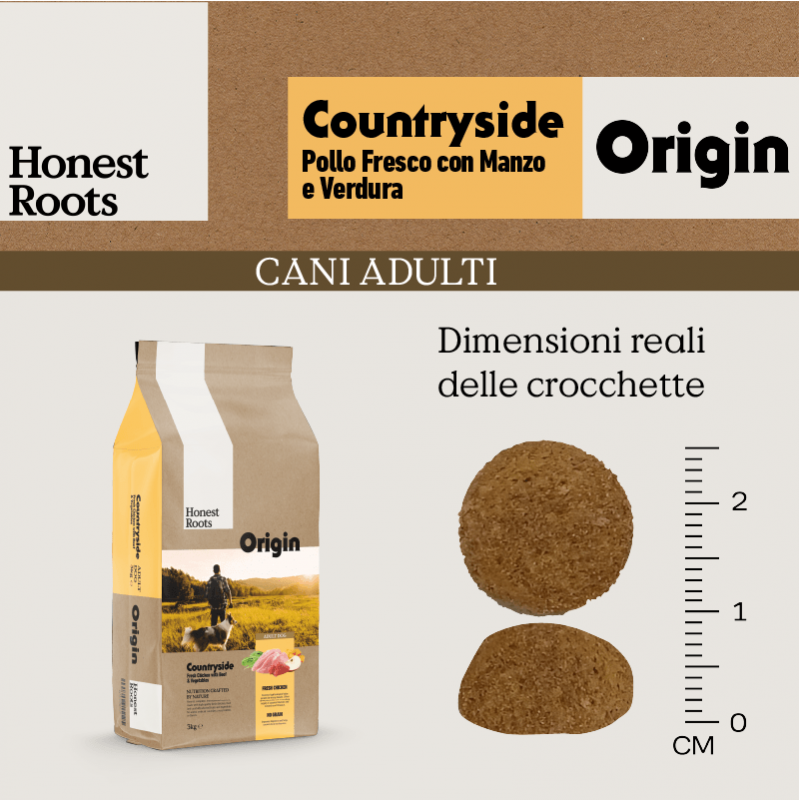 Realizzate con ingredienti naturali e senza additivi artificiali, le Honest Roots Origin Countryside Adult rappresentano l’essenza delle crocchette naturali per cani: nutrizione autentica, salutare e adatta alle esigenze di ogni cane adulto.