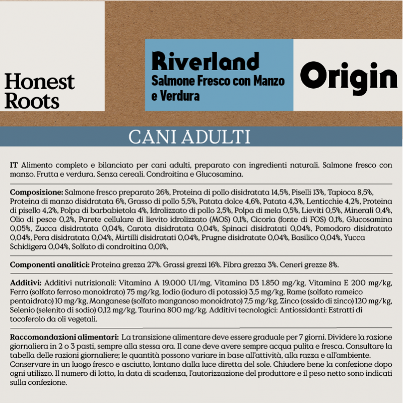 Se cerchi crocchette naturali per cani complete, gustose e funzionali, Honest Roots Origin Riverland è la scelta ideale della linea Origin: nutrizione autentica, ingredienti naturali e risultati visibili.