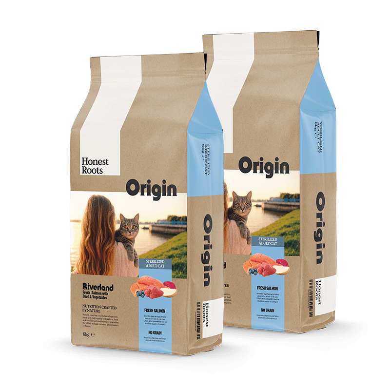 Con Honest Roots Origin Riverland offri al tuo gatto sterilizzato un’alimentazione naturale e completa, senza cereali e con ingredienti reali. Crocchette naturali per gatti che uniscono nutrizione funzionale, gusto e benessere a ogni boccone.