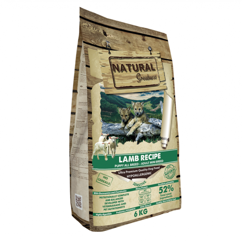 Natural Greatness Puppy & Mini è un alimento naturale per cani completo per cuccioli e cani di piccola taglia, favorendo digestione e crescita sana.