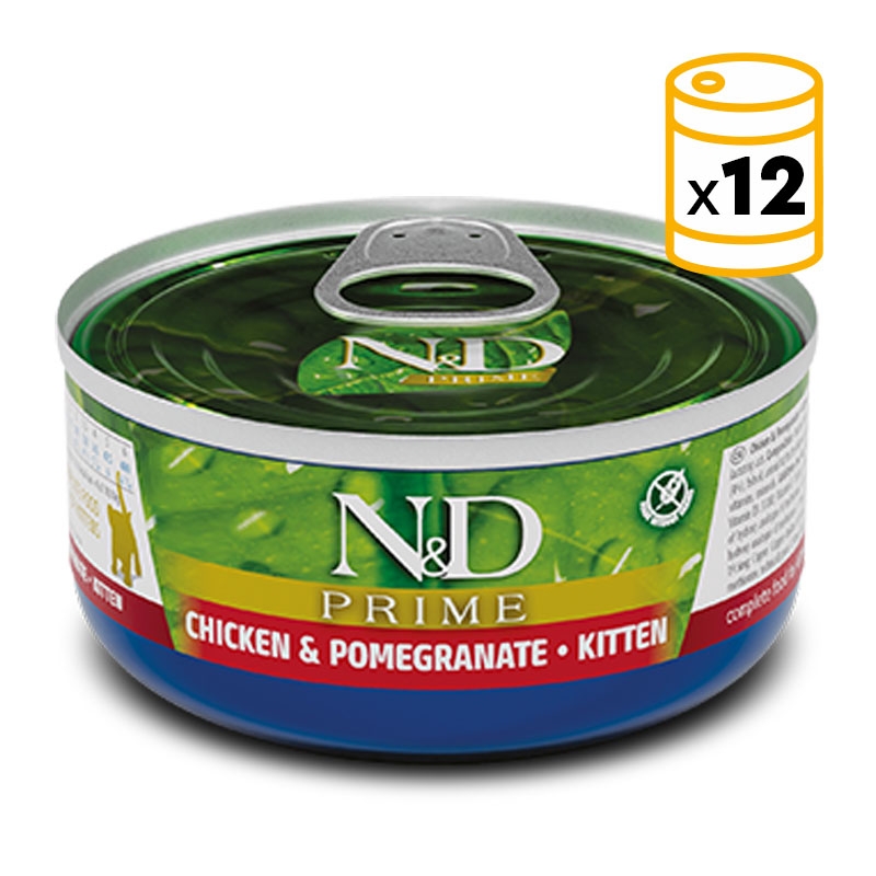 Scopri N&D Prime Feline, un'opzione completa e nutritiva per gattini in crescita, gatte gestanti o in allattamento. Con l'esquisita combinazione di pollo e melograno, questo cibo umido offre una nutrizione eccezionale.