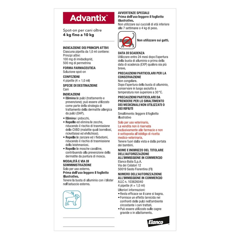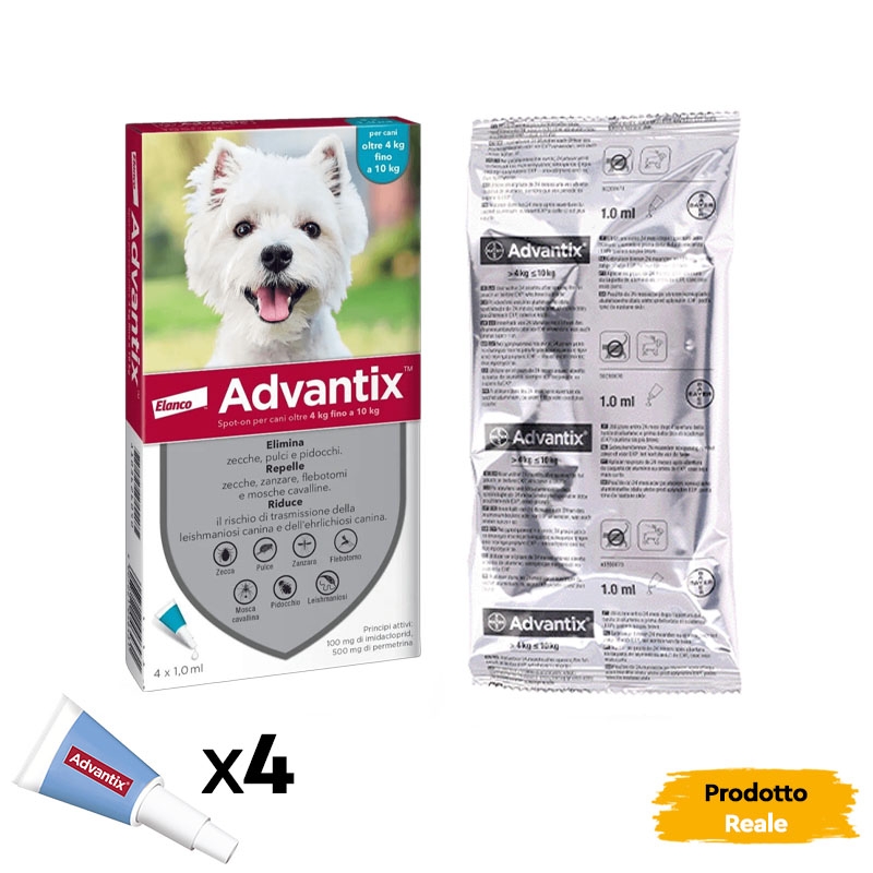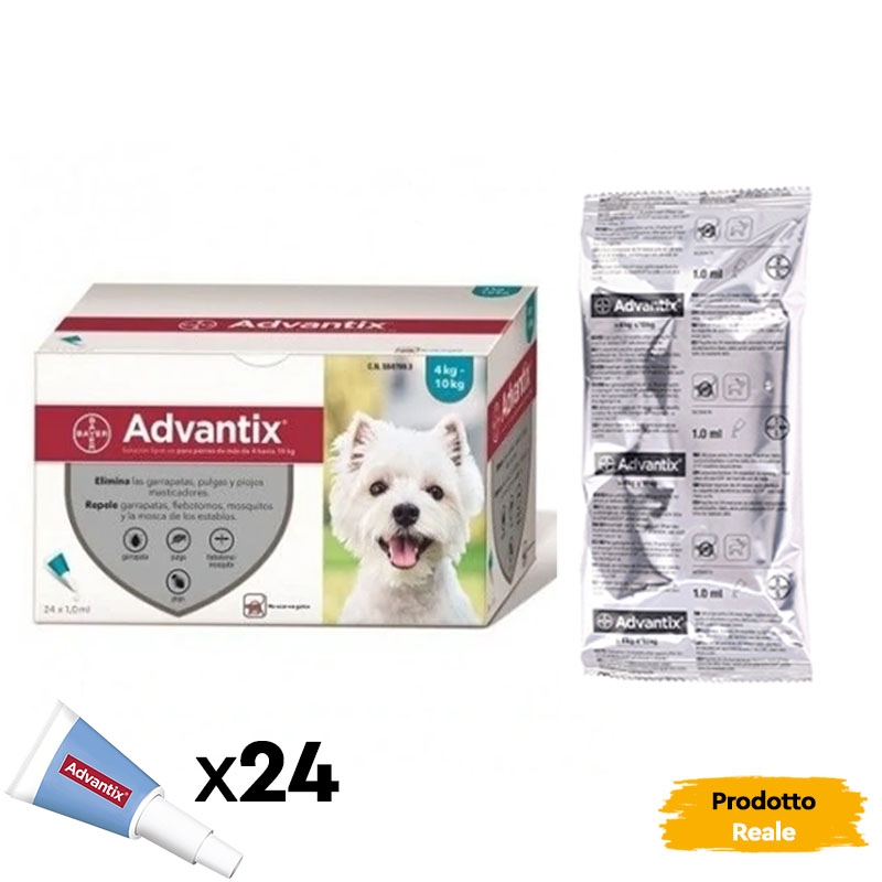 Disponibile anche: Advantix 0-4 kg per cani mini, Advantix 4-10 kg per cani piccoli e Advantix 10-25 kg per cani di taglia media.