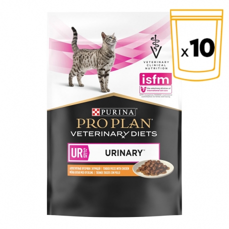 Il cibo umido Pro Plan Veterinary Diets UR Urinary al pollo è una soluzione dietetica completa per gatti adulti, progettata specificamente per ridurre la formazione di calcoli urinari e dissolvere i cristalli esistenti. Questo alimento ha un contenuto ridotto di magnesio e minerali, il che aiuta ad eliminare le sostanze che contribuiscono alla formazione di calcoli.