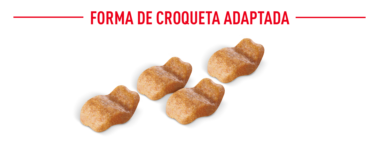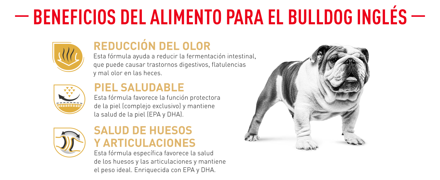 Il crocchette di ROYAL CANIN® Bulldog Adult è stata adattata in modo esclusivo ai cani di razza Bulldog, dato che una delle caratteristiche di questa razza è il muso rivolto verso l'alto e la differenza di dimensioni tra le mascelle (la mascelle superiore è più corta di quella inferiore), per cui le dimensioni e la forma del crocchette sono state adattate specificamente per facilitare l'assunzione di cibo.