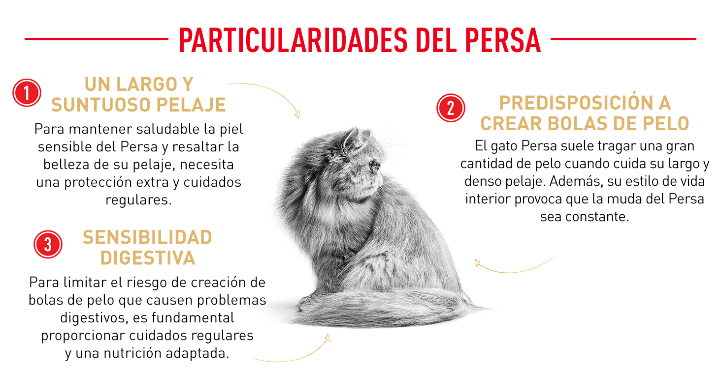 A causa del suo lungo pelo, i gatti Persiani sono inclini a formare boli di pelo. Per questo motivo, Persian Adult di ROYAL CANIN®, fornisce una miscela specifica di fibre (tra cui il psillio, ricco di mucillagine) che aiuta a stimolare naturalmente il transito intestinale, a eliminare il pelo ingerito e a controllare la formazione di boli di pelo.