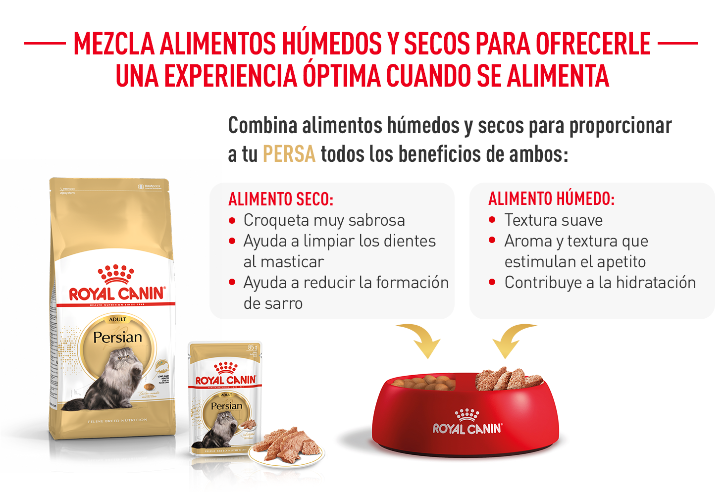 Per adattarsi alle preferenze individuali di ogni gatto, Persian Adult di ROYAL CANIN® è disponibile anche in formato umido, in forma di paté morbido e gustoso. Se desideri fornire al tuo gatto un'alimentazione mista, segui le nostre linee guida alimentari per assicurarti che riceva la quantità precisa di entrambi gli alimenti e benefici di tutti i loro vantaggi.