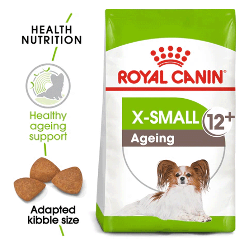 Il mangime Royal Canin X-Small Ageing +12 è disponibile in sacchetti da 0,5 kg e 1,5 kg. Questo alimento è indicato per cani di razza miniatura che pesano meno di 4 chili. Il mangime X-Small Ageing contiene i nutrienti specifici per cani di oltre 12 anni. Scopri di più sulla composizione e i benefici di questo alimento per la salute del tuo cane.
