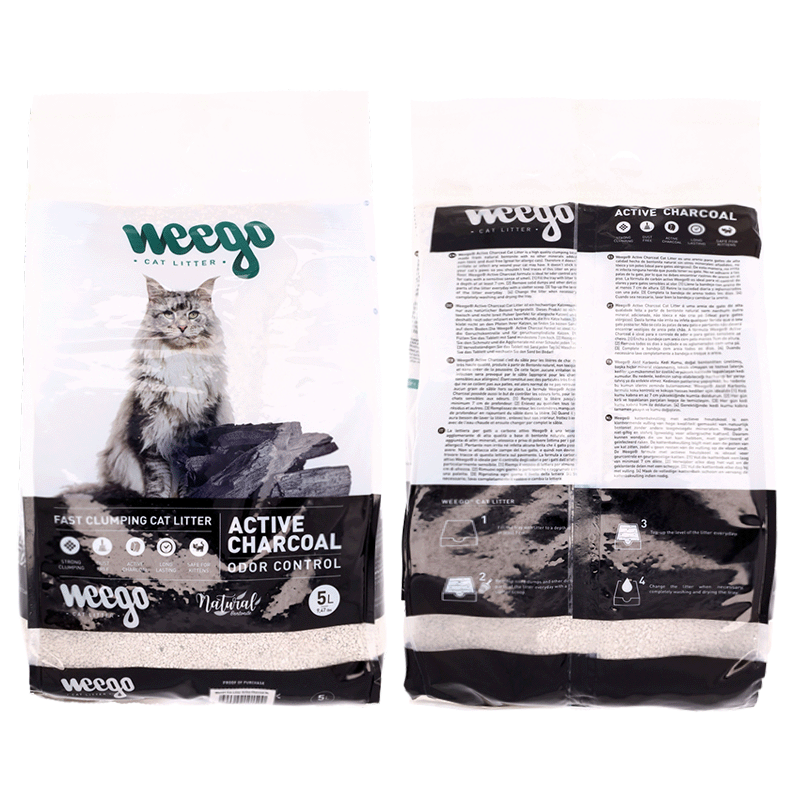 La arena Weego Active Charcoal está compuesta por bentonita natural y carbón activo, dos ingredientes que trabajan en conjunto para ofrecer una excelente capacidad de absorción y control de olores.