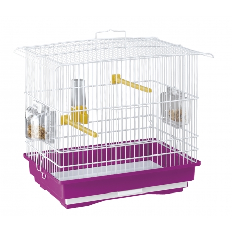 Giusy es una jaula básica y práctica con una robusta base plástica y estructura de malla de alambre que ha sido barnizada de blanco. Es ideal para canarios o pequeñas aves exóticas, es cómoda y está equipada con todos los accesorios que necesita su mascota, incluye un bebedero plástico y perchas, innovadores comederos giratorios Brava 1, haciendo extremadamente fácil alimentar a sus aves desde fuera de la jaula. Esta jaula es también fácil de cuidar y estará siempre limpia y ordenada, gracias a su bandeja de recogida de suciedad.