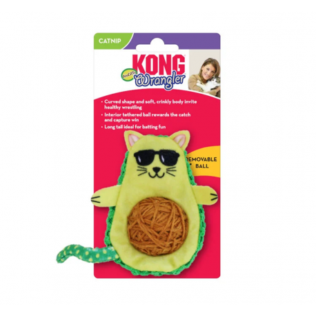El Kong Wrangler Aguacate con bola es perfecto para gatos que disfrutan del juego activo, la lucha controlada y los juguetes que responden con movimiento y sonido.