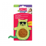 Juguete para gatos Kong con forma de aguacate, cuerpo crujiente, bola de estambre con cascabel, cola larga y hierba gatera Kong, diseñado para estimular el instinto de caza y ofrecer juego activo y entretenido.
