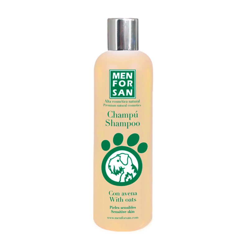Men For San Champú con Avena para perros con piel sensible o seca. Fórmula natural y suave que hidrata, calma y protege la piel. pH neutro, sin parabenos y apto para uso frecuente.