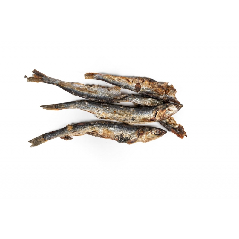Snack natural de boquerones deshidratados, alto en proteínas y Omega 3, ideal para perros de todas las edades que necesitan un premio saludable que mejore su pelaje y fortaleza ósea.