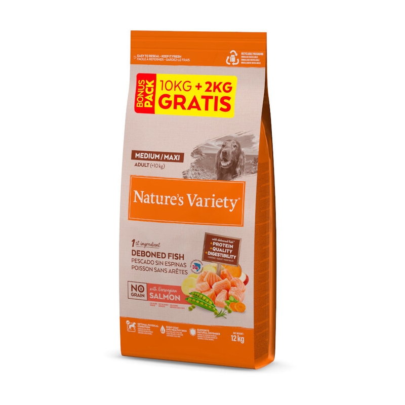 El pienso para perros Nature's Variety Original Adult Medium con salmón ofrece una alimentación equilibrada y natural para perros de tamaño mediano. Con un alto contenido en proteína de salmón, proporciona todos los nutrientes esenciales para una salud óptima.