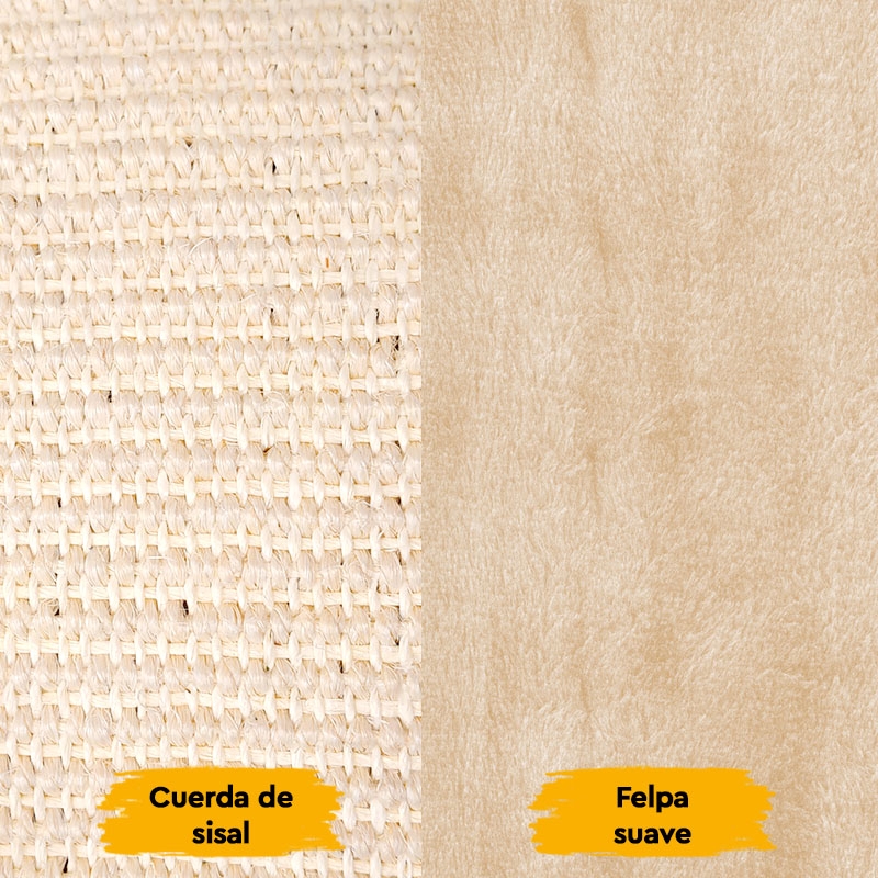Incluye postes recubiertos de sisal que ofrecen una textura adecuada para que el felino rasque sin dañar el mobiliario ni las telas del hogar.