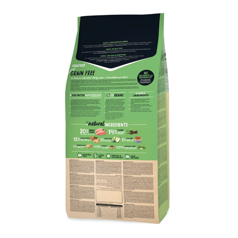 El pienso para perros Ownat Just Grain Free Adulto Light es la opción perfecta para perros adultos que necesitan controlar su peso sin sacrificar una nutrición completa y equilibrada. Esta fórmula está especialmente diseñada para perros con tendencia al sobrepeso, ofreciendo una alternativa grain free (sin cereales) que facilita la digestión y contribuye a mantener un peso saludable. Con una excelente combinación de proteínas animales y vegetales, este pienso garantiza que tu mascota obtenga todos los nutrientes necesarios para su bienestar general.