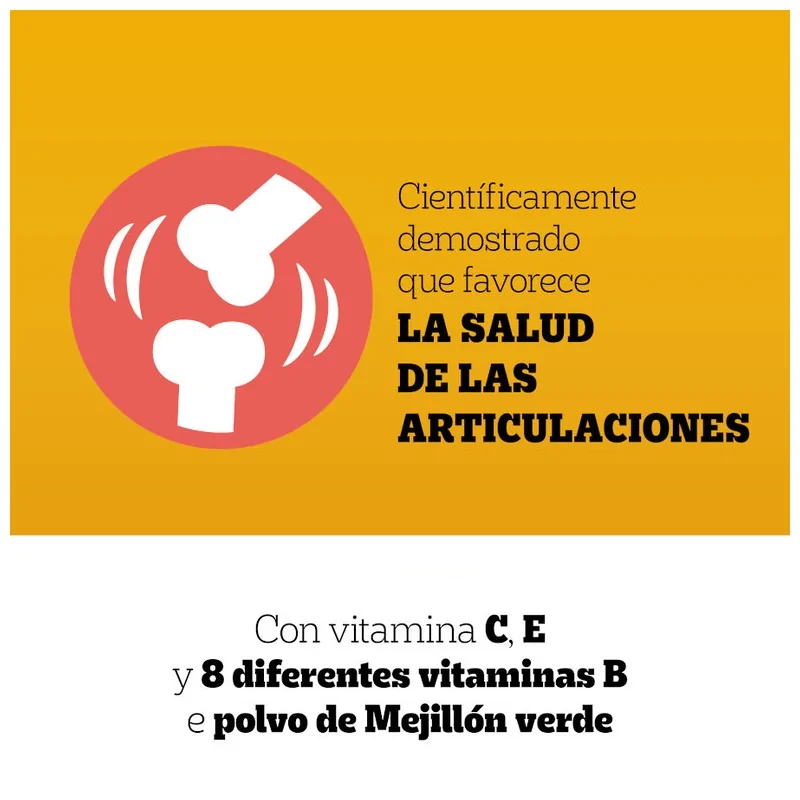 Snack multivitamínico para perros adultos que apoya la salud articular y mejora la movilidad, con una combinación de glucosamina, mejillón de labios verdes y vitaminas esenciales.