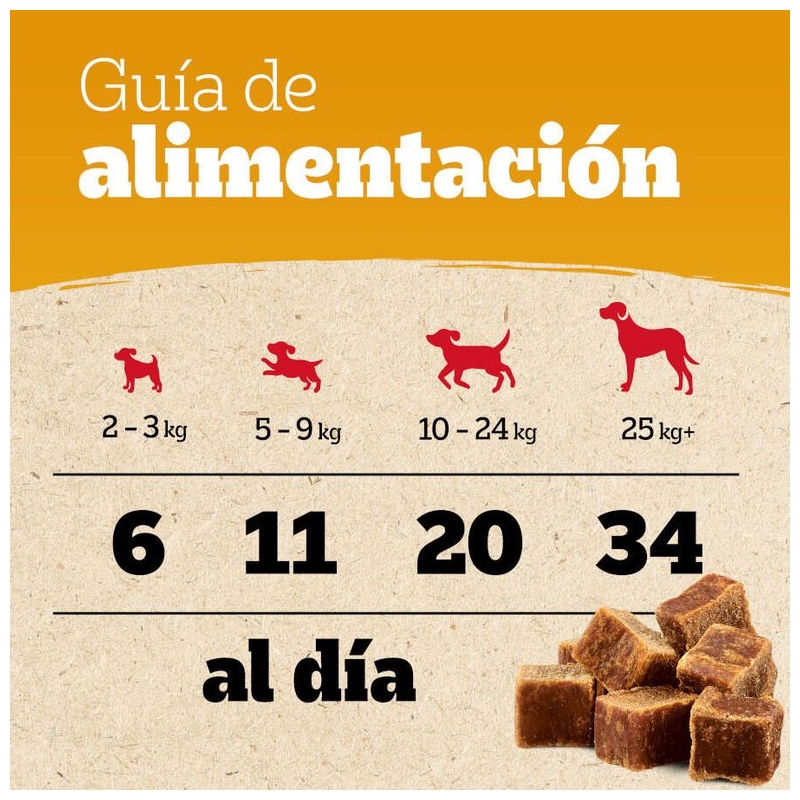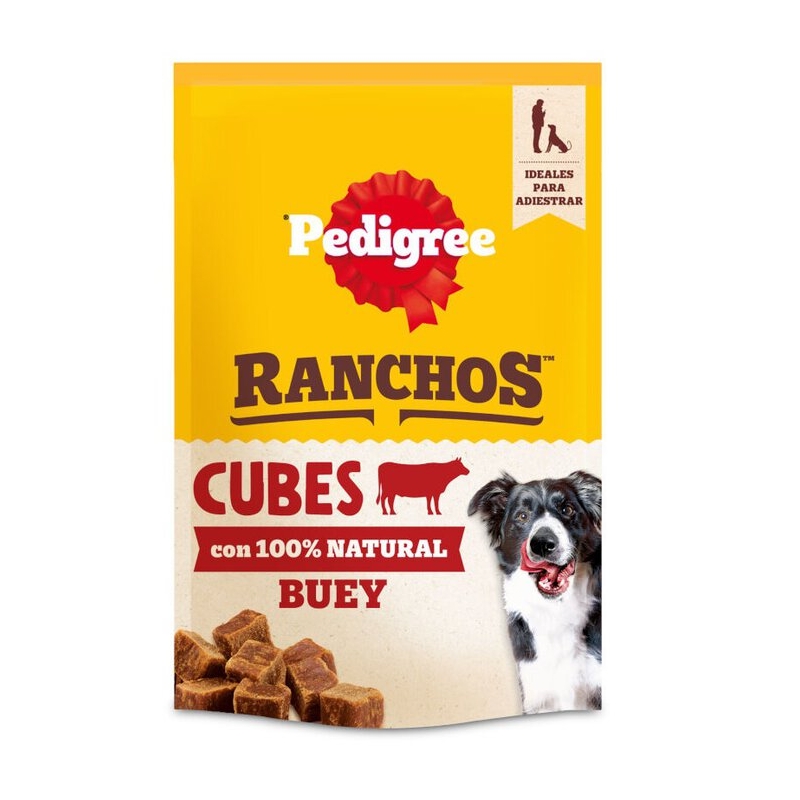 Pedigree Ranchos Cubes son bocaditos de buey con ingredientes naturales, perfectos para complementar la dieta diaria de tu perro. Su formato en pequeños cubos y su textura blanda y suculenta los hacen ideales para el adiestramiento y el refuerzo positivo, manteniendo la motivación en cada sesión.