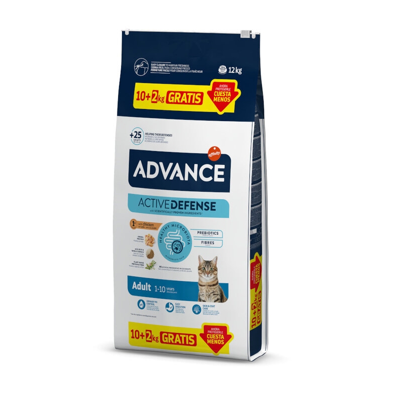 ADVANCE Adult es un alimento de alta gama, formulado con ingredientes de calidad y fácil de digerir. Está diseñado específicamente para cubrir las necesidades únicas de los gatos adultos, promoviendo el correcto funcionamiento de sus defensas y barreras naturales.