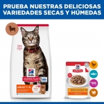 La alta proteína de calidad en este alimento apoya la masa muscular de tu gato. También contiene vitamina E y ácidos grasos omega-3 y 6 para promover un pelaje brillante y una piel saludable. Hill's Science Plan ofrece una nutrición excepcional para mantener a tu gato adulto lleno de vitalidad y bienestar.