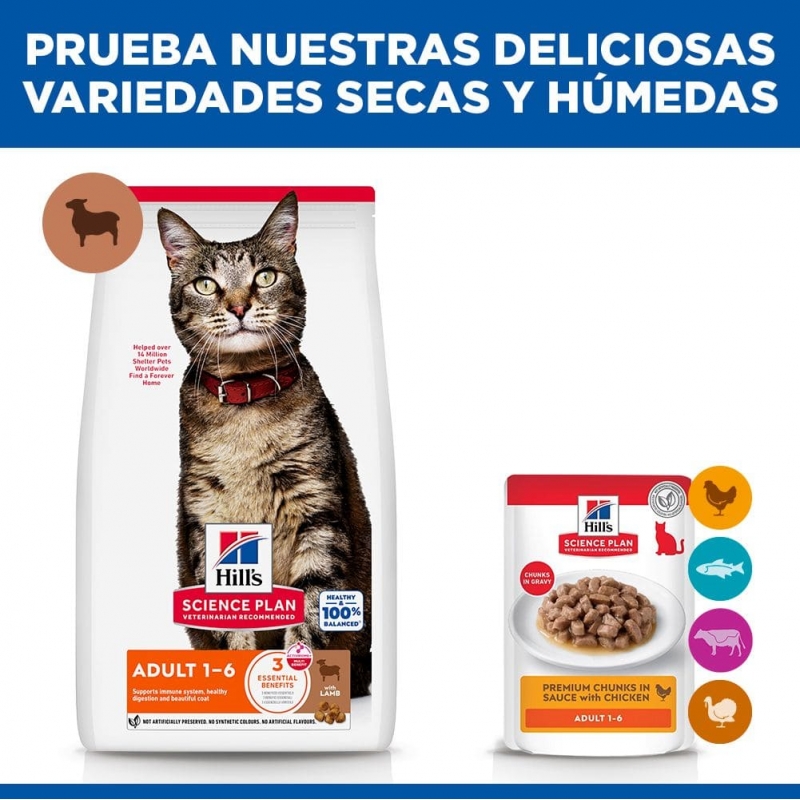 Hill's Science Plan Alimento para gatos adultos con cordero es completo para gatos de 1 a 6 años.