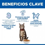 Contribuye al mantenimiento del peso ideal y la vitalidad en gatos adultos.