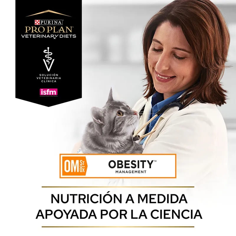 Si buscas un alimento completo y equilibrado para apoyar a tu gato en su camino hacia la pérdida de peso, puedes confiar en Purina Pro Plan Feline OM ST/OX Obesity Management Veterinary Diets. Este pienso dietético está diseñado para reducir el sobrepeso, brindando una receta con bajo contenido de energía que respalda un proceso de adelgazamiento saludable.