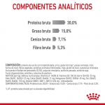 Componentes analíticos: Proteína bruta: 30% - Grasa bruta: 15% - Ceniza bruta: 7% - Fibra bruta: 5,2% - Trifosfato pentasódico: 2 g/kg.