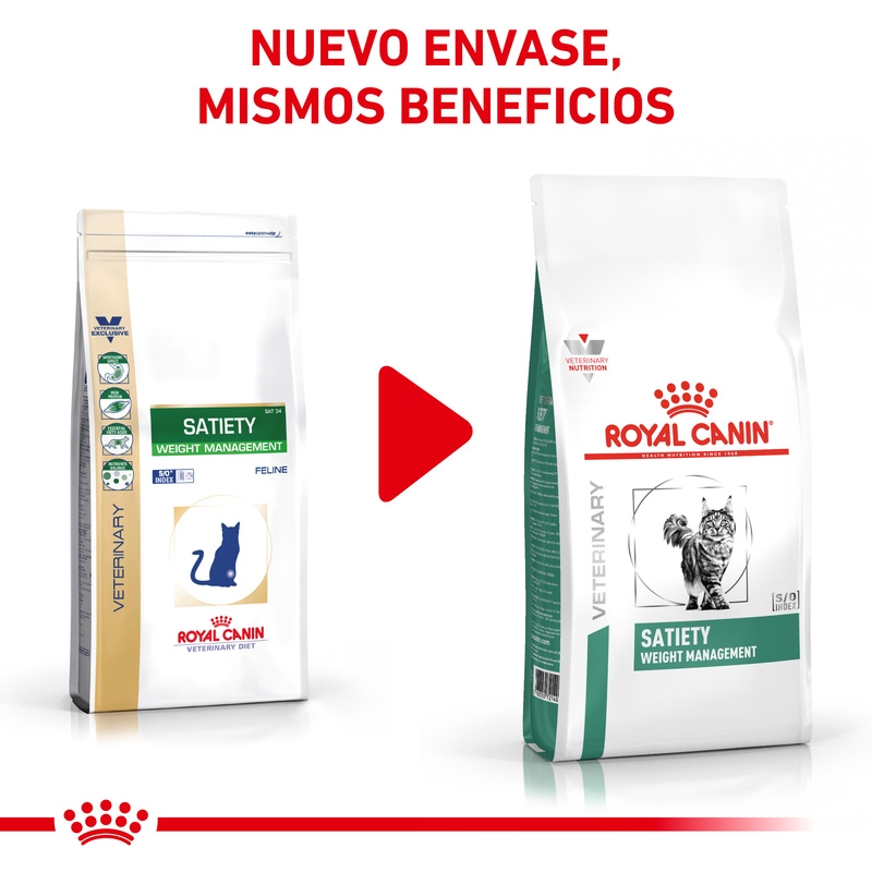 ROYAL CANIN® SATIETY WEIGHT MANAGEMENT es un alimento dietético completo para gatos, formulado para reducir el exceso de peso.Este alimento tiene un bajo contenido energético. RECOMENDACIONES: Utilizar SATIETY WEIGHT MANAGEMENT hasta alcanzar el peso corporal objetivo.