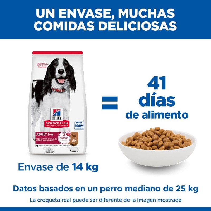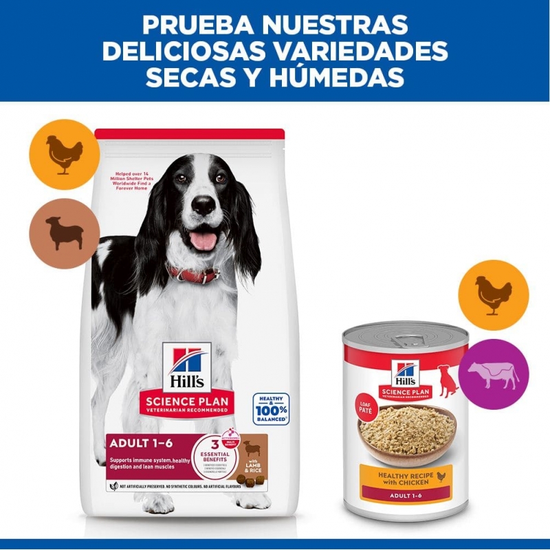 Hill's™ Science Plan™ MEDIUM ALIMENTO PARA PERROS ADULTOS con CORDERO y ARROZ, óptimo para adultos medianos.